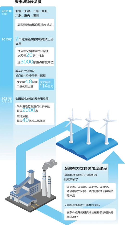 9點30分正式開市,10分鐘后,累計成交金額超過2000萬元。全天4個小時的交易,成交量410萬噸,收盤價單日漲幅6.7%。這是7月16日全國碳排放權(quán)交易市場啟動后的火熱交易景象。 建設(shè)全國碳排放權(quán)交易市場,是利用市場機制控制和減少溫室氣體排放、推動綠色低碳發(fā)展的一項重大制度創(chuàng)新,是實現(xiàn)碳達峰、碳中和的重要政策工具。從地方試點起步,到全國市場啟動,10年間,經(jīng)驗不斷積累、制度逐步完善。碳市場是如何運行的?碳價格是怎樣形成的?金融業(yè)又將在其中發(fā)揮什么作用?記者采訪了相關(guān)企業(yè)、交易所和專家。 “無形之手”助減排 碳市場能以最低成本、最高效率實現(xiàn)碳減排,充分發(fā)揮價格發(fā)現(xiàn)作用 在全國碳市場啟動前,地方碳市場試點工作已開展了10年,推動了不少企業(yè)的綠色轉(zhuǎn)型。 “當時公司以每噸60元的價格購買了約25萬噸碳配額?!?014年的首次碳交易讓廣州恒運企業(yè)集團股份有限公司副總經(jīng)理周水良記憶猶新。廣東是首批開展碳排放權(quán)交易試點的省份之一,作為重點電力生產(chǎn)企業(yè),廣州恒運于2014年被納入碳排放管理,當時由于碳配額不足,企業(yè)購買了約1500萬元碳配額履約。 隨著試點交易的深入進行,廣州恒運逐步認識到減排不只是壓力,碳資產(chǎn)管理、減碳技術(shù)應(yīng)用也能帶來經(jīng)濟效益。于是,公司成立了專門的節(jié)能減碳專班,升級改造發(fā)電機組,大力發(fā)展天然氣發(fā)電等低碳的清潔能源項目……一系列改造升級讓廣州恒運實現(xiàn)從花錢購買碳配額到出售碳資產(chǎn)獲利的轉(zhuǎn)變。2020年,企業(yè)通過出售碳資產(chǎn)獲利3000多萬元。 像廣州恒運一樣,不少控排企業(yè)嘗到了碳市場帶來的甜頭?!霸絹碓蕉嗥髽I(yè)意識到,只有主動減排,才能在綠色低碳轉(zhuǎn)型的大潮中占得有利先機?!睆V州碳排放權(quán)交易所總經(jīng)理孟萌介紹,在試點過程中廣東碳市場較為活躍,截至今年6月,碳排放權(quán)累計成交金額超過40億元,居全國首位。 “更重要的是,碳市場切實推動產(chǎn)生了良好的減排效果,通過碳排放總量控制、指標分配和履約機制,廣東碳市場整體實現(xiàn)絕對量減排,2019年減排量達4374萬噸,減排幅度達11.4%?!泵厦日J為,不論是國外實踐還是國內(nèi)試點都表明,碳市場是一個能夠以最低成本、最高效率實現(xiàn)減排的政策工具。 這一市場是如何運轉(zhuǎn)的?孟萌以廣東碳市場為例介紹碳市場的建設(shè)框架:首先設(shè)定碳市場覆蓋范圍,廣東確定覆蓋的行業(yè)是電力、水泥、鋼鐵、石化、造紙、民航六大行業(yè)中年排放二氧化碳2萬噸及以上的企業(yè);再設(shè)定配額總量,也就是降碳的目標任務(wù);然后制定配額分配方案,采取基準線法,同行業(yè)的企業(yè)橫向比較,獎勵先進、懲戒落后,同時明確碳配額分配是否免費以及有償分配的比例。此外,還要建立碳排放報告核查體系和履約機制,監(jiān)管企業(yè)的碳排放量,明確未履約行為的懲罰規(guī)則,保證碳市場的約束力和公信力。 碳市場交易的產(chǎn)品是碳排放權(quán)。像廣州恒運那樣,獲得一定碳排放配額的控排企業(yè),超額排放需在碳市場上購買配額,成功減排則可出售富余配額。全國碳市場上線后,首批納入的2000多家電力行業(yè)重點排放單位可以在全國碳排放權(quán)交易系統(tǒng)中通過協(xié)議轉(zhuǎn)讓、單向競價或其他符合規(guī)定的方式交易。 碳市場如何發(fā)揮低成本、高效率的減排作用?在北京綠色交易所總經(jīng)理梅德文看來,碳市場同其他市場一樣,通過價格信號來引導(dǎo)碳排放權(quán)資源的優(yōu)化配置,以“無形之手”推動降低全社會減排成本,促進綠色低碳產(chǎn)業(yè)投資。 “要充分發(fā)揮碳市場的價格發(fā)現(xiàn)作用,只有推動形成合理碳價,才能讓碳市場起到高效約束碳排放和激勵節(jié)碳的作用?!泵返挛恼J為,碳價過低,企業(yè)沒有減排積極性;碳價過高則會導(dǎo)致一些高碳企業(yè)負擔過重,也不利于企業(yè)轉(zhuǎn)型發(fā)展。 從7個地方試點的運行情況看,近兩年加權(quán)平均碳價約在每噸40元左右。梅德文認為,雖然試點地區(qū)進行了有益探索,但由于市場規(guī)模有限,還未形成真實反映碳排放綜合社會成本的碳價。發(fā)現(xiàn)合理有效的碳價,是全國碳市場建設(shè)的重要目標任務(wù)。 豐富碳金融衍生品 碳排放權(quán)期貨市場建設(shè)將與現(xiàn)貨市場相互促進、共同發(fā)展 如何更好地通過碳市場形成碳價格,最大化發(fā)揮碳價格的激勵約束作用?專家認為,國際經(jīng)驗表明,由于碳交易具有較強的金融屬性,應(yīng)引入碳期貨等金融衍生品交易機制,以更好地發(fā)現(xiàn)價格和進行風(fēng)險管理。 “只有多元的金融機構(gòu)、金融產(chǎn)品加入進來,碳市場才能更為活躍,碳定價才能更有效率。”梅德文認為,多元化的市場主體風(fēng)險偏好、預(yù)期、信息來源不同,這樣才能形成相對公允的價格,有助于形成有效的市場定價機制。 平安證券首席策略分析師魏偉也認為,沒有金融機構(gòu)的參與,碳市場在價格發(fā)現(xiàn)、引導(dǎo)預(yù)期、風(fēng)險管理等方面的作用將大打折扣。魏偉舉例說,歐盟的碳交易市場發(fā)展得相對比較成熟,