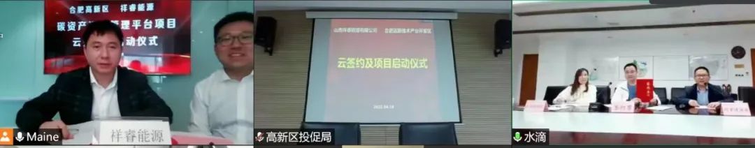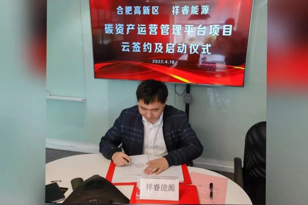 4月18日,安徽省合肥高新區(qū)與祥睿能源就碳資產(chǎn)運營管理平臺項目達(dá)成深度合作,并通過線上云簽約的方式,舉行啟動儀式。合肥高新區(qū)投資促進(jìn)局副局長陳利軍、新興產(chǎn)業(yè)處處長何志強(qiáng)、生態(tài)環(huán)境分局副局長黃兆麗,祥睿能源董事長王正通、總裁楊新宇、總工程師孫大偉、低碳云中心總經(jīng)理尉言等出席儀式。