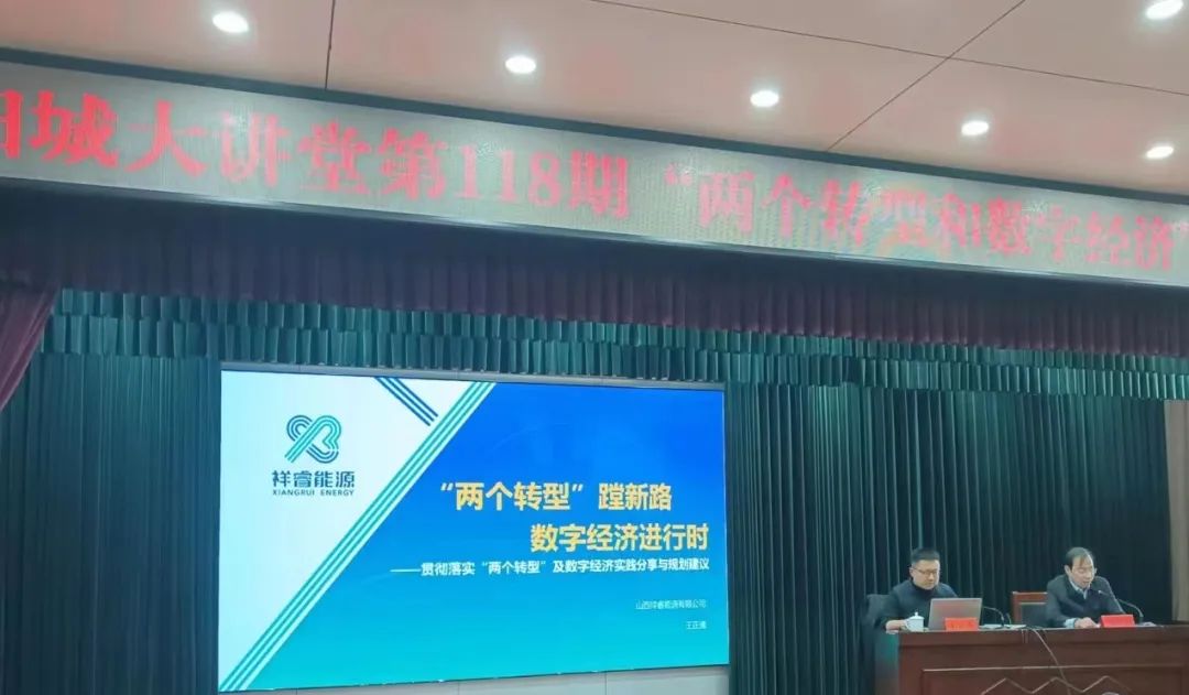 在專題講座上,王正通以習(xí)近平總書記在黨的二十大做的報(bào)告精神為指導(dǎo),緊緊圍繞省委書記林武在全省同步推進(jìn)“兩個(gè)轉(zhuǎn)型”大會(huì)上關(guān)于產(chǎn)業(yè)轉(zhuǎn)型和數(shù)字轉(zhuǎn)型的重要講話精神和全省數(shù)字經(jīng)濟(jì)布局,從數(shù)字經(jīng)濟(jì)的重要性、今后五年及未來(lái)國(guó)家數(shù)字經(jīng)濟(jì)發(fā)展、山西“兩個(gè)轉(zhuǎn)型”及數(shù)字經(jīng)濟(jì)發(fā)展、太忻數(shù)據(jù)流量谷數(shù)字經(jīng)濟(jì)建設(shè)經(jīng)驗(yàn)、祥睿能源“兩個(gè)轉(zhuǎn)型”及數(shù)字經(jīng)濟(jì)實(shí)踐等方面進(jìn)行了詳盡的解讀和分享,同時(shí)為陽(yáng)城縣同步推進(jìn)“兩個(gè)轉(zhuǎn)型”和數(shù)字經(jīng)濟(jì)建設(shè)提出了建議。