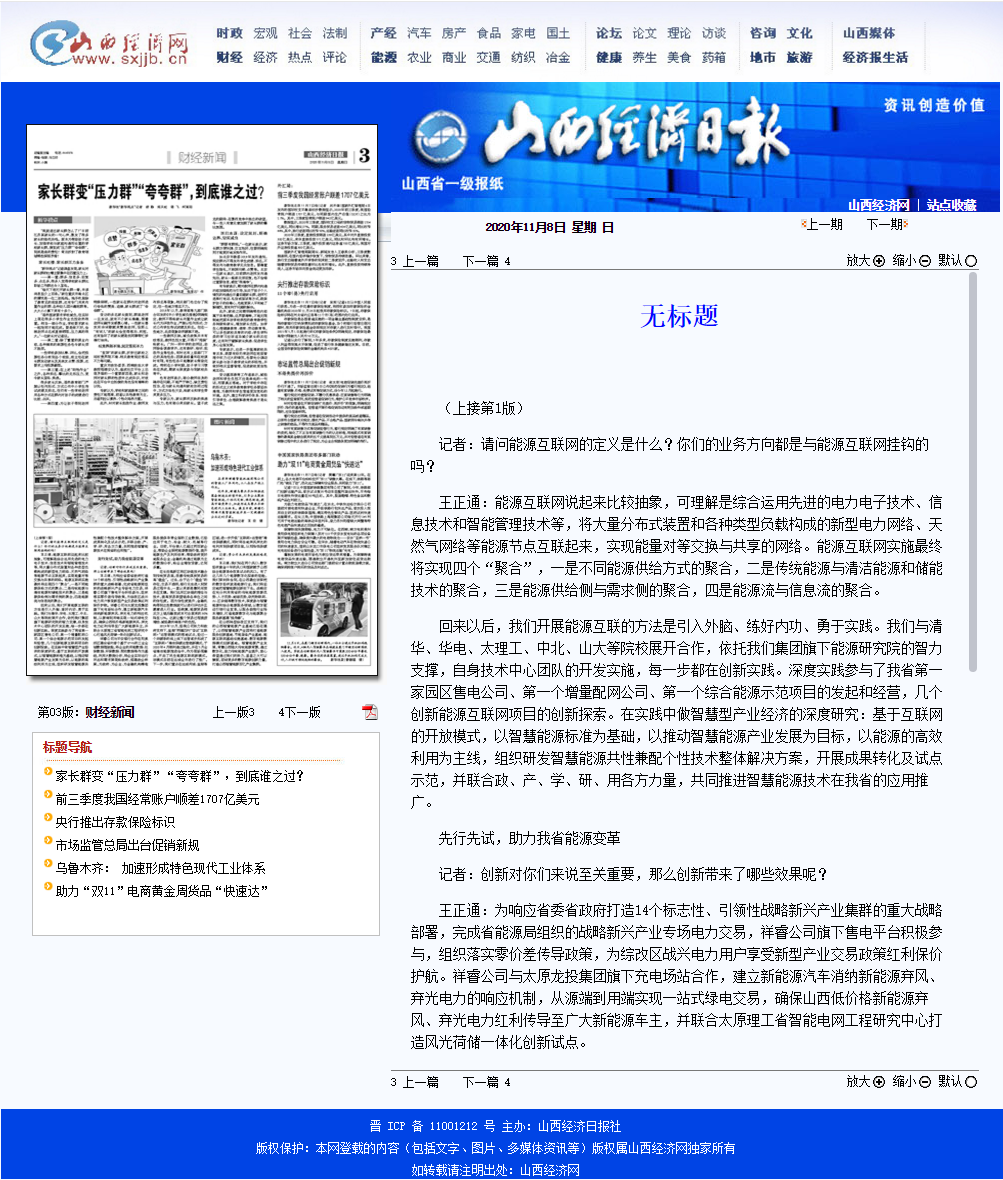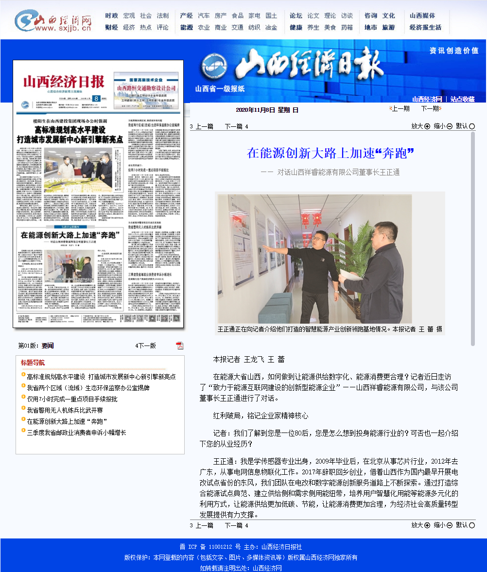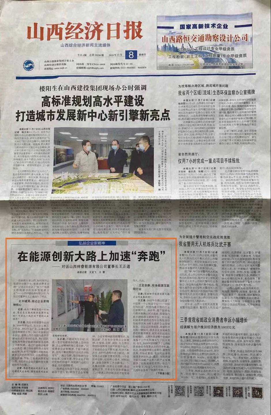2020年11月8日《山西經(jīng)濟日報》晉周刊專欄,就祥睿能源董事長王正通與記者的對話進行了專題報道,淺談如何弘揚企業(yè)家精神。 企業(yè)家是企業(yè)的統(tǒng)帥和靈魂,也是改革創(chuàng)新的重要力量。習近平總書記指出:“我們?nèi)嫔罨母?,就要激發(fā)市場蘊藏的活力。市場活力來自于人,特別是來自于企業(yè)家,來自于企業(yè)家精神。”作為企業(yè)家,要運用創(chuàng)新意識和創(chuàng)新能力,能注意到別人忽略的問題,想到他人沒有想或不敢想的問題,抓住時機,出奇制勝。無論是管理創(chuàng)新、產(chǎn)品創(chuàng)新、服務創(chuàng)新還是技術創(chuàng)新,本身就充滿著市場和技術的不確定性,需要企業(yè)家有膽識、有魄力,敢于擔當。面對經(jīng)濟發(fā)展新常態(tài),更需要發(fā)揚企業(yè)家精神,以更大的決心、更大的勇氣參與市場競爭,引領企業(yè)激發(fā)創(chuàng)新改革活力。