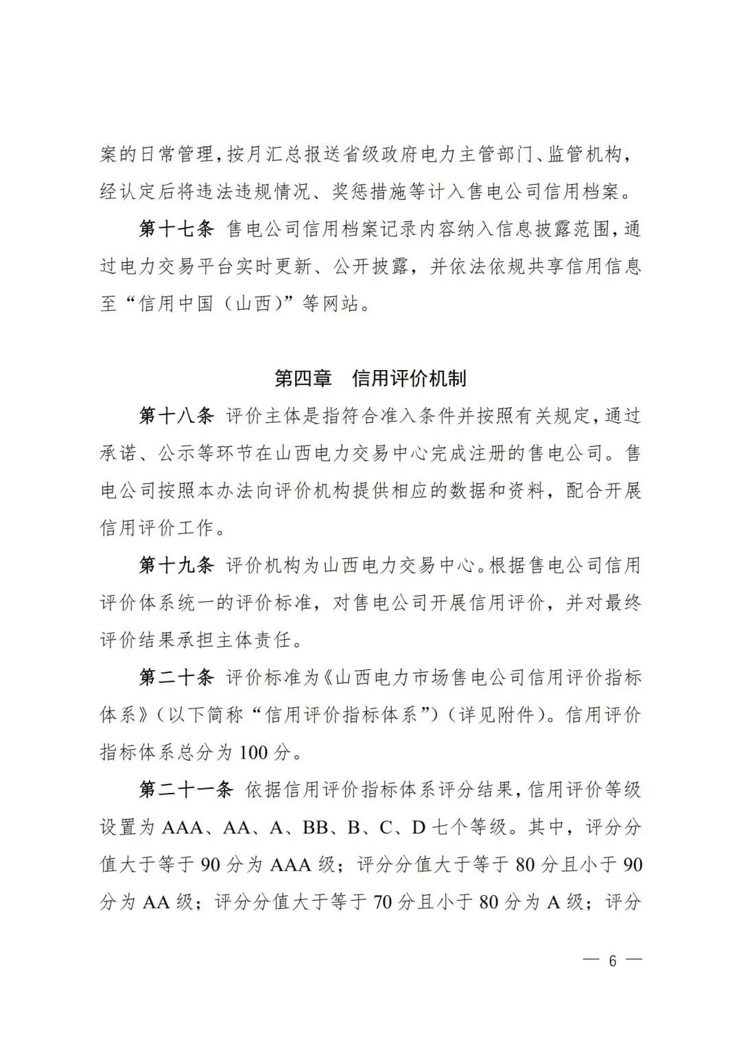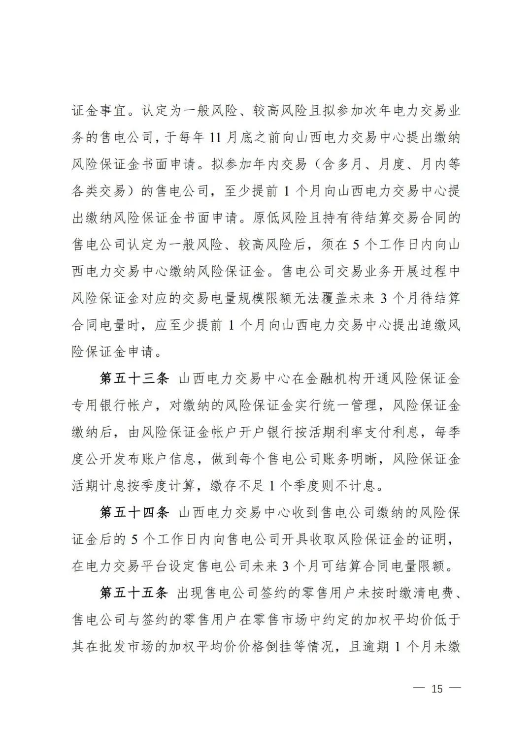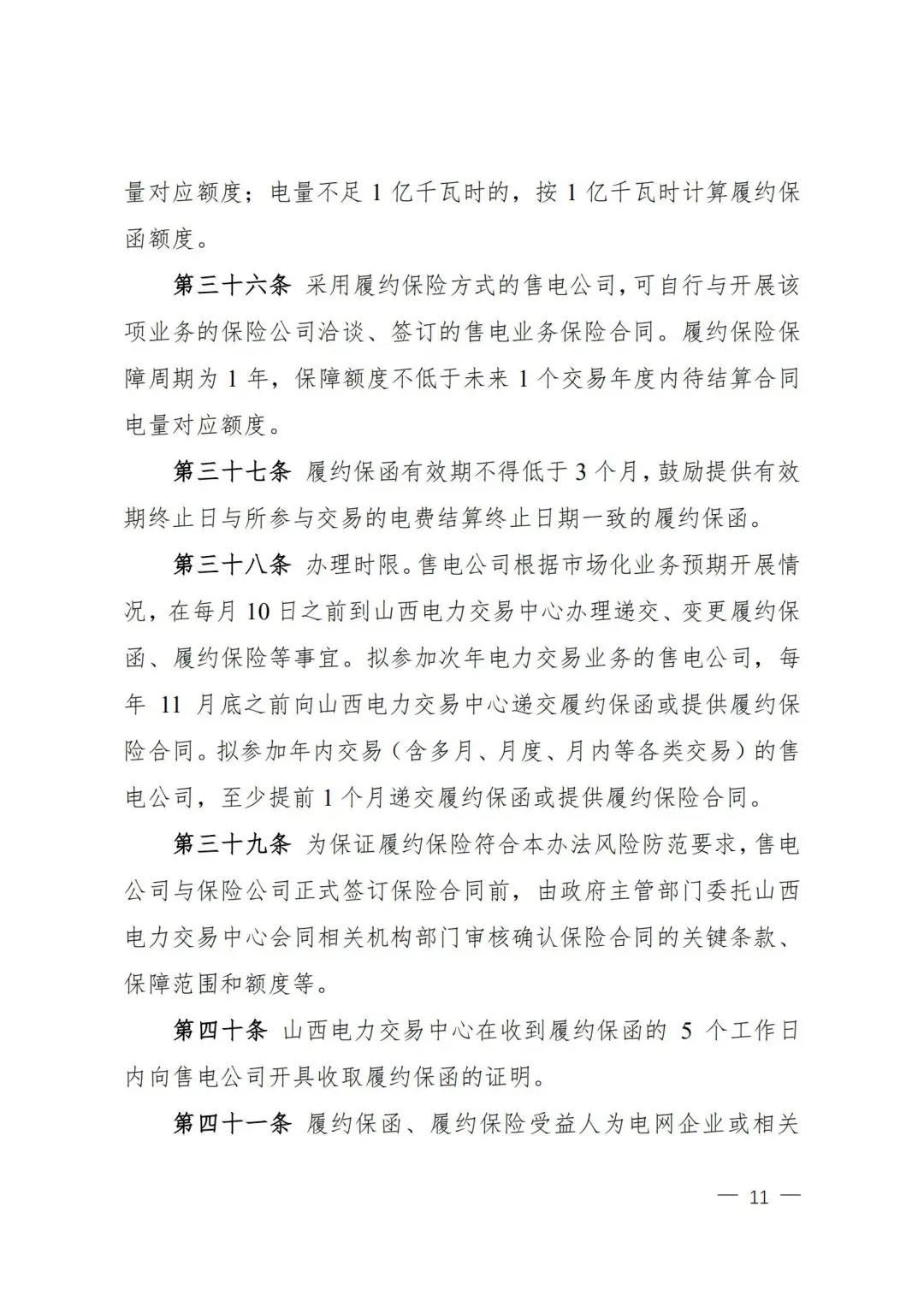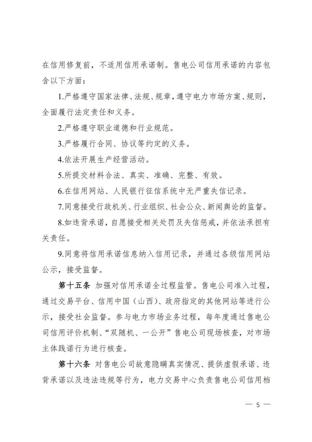 | 山西電力市場(chǎng)售電公司信用評(píng)價(jià)與風(fēng)險(xiǎn)防范管理辦法:依據(jù)風(fēng)險(xiǎn)級(jí)別執(zhí)行履約保函、保險(xiǎn)或風(fēng)險(xiǎn)保證金措施 |