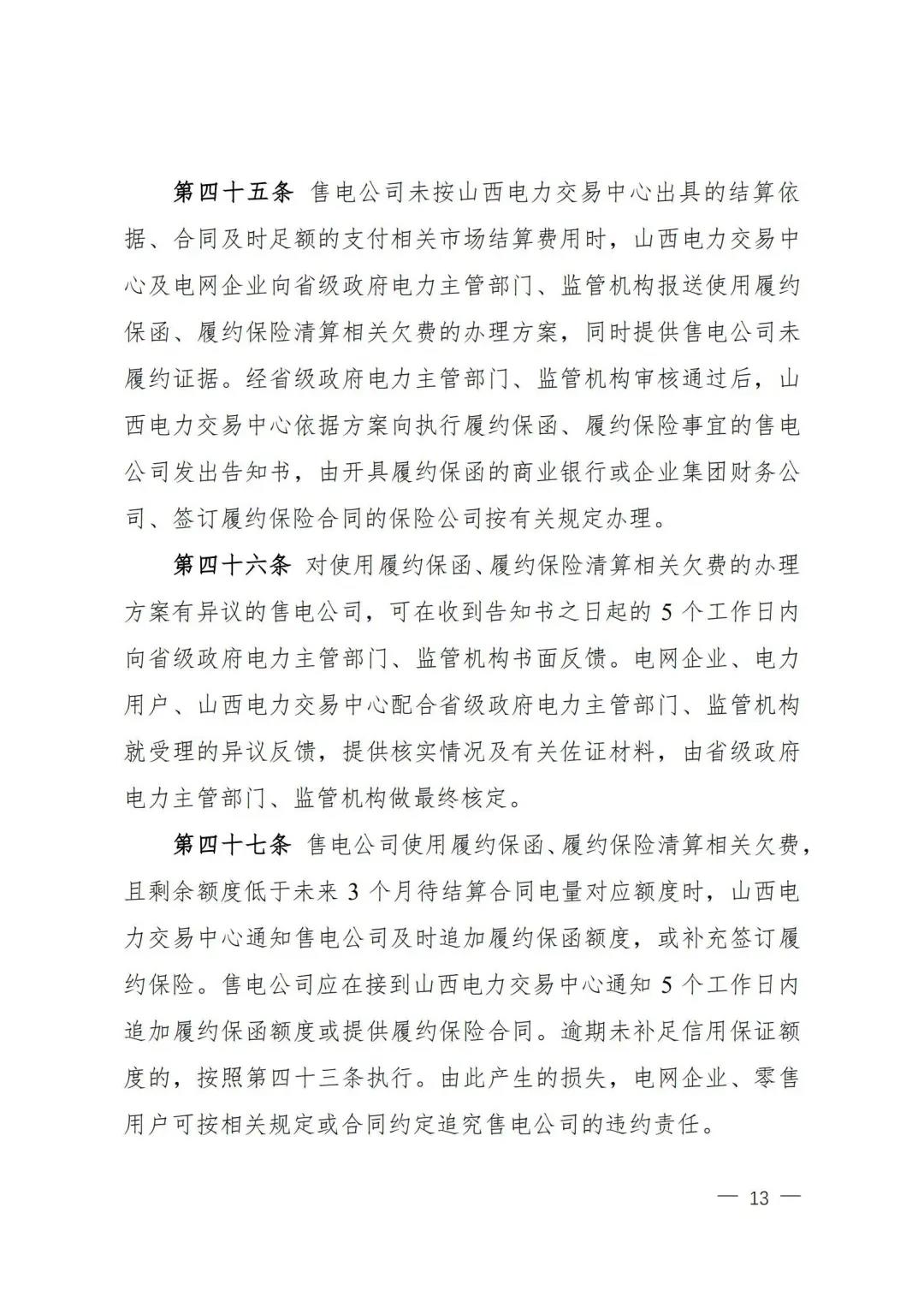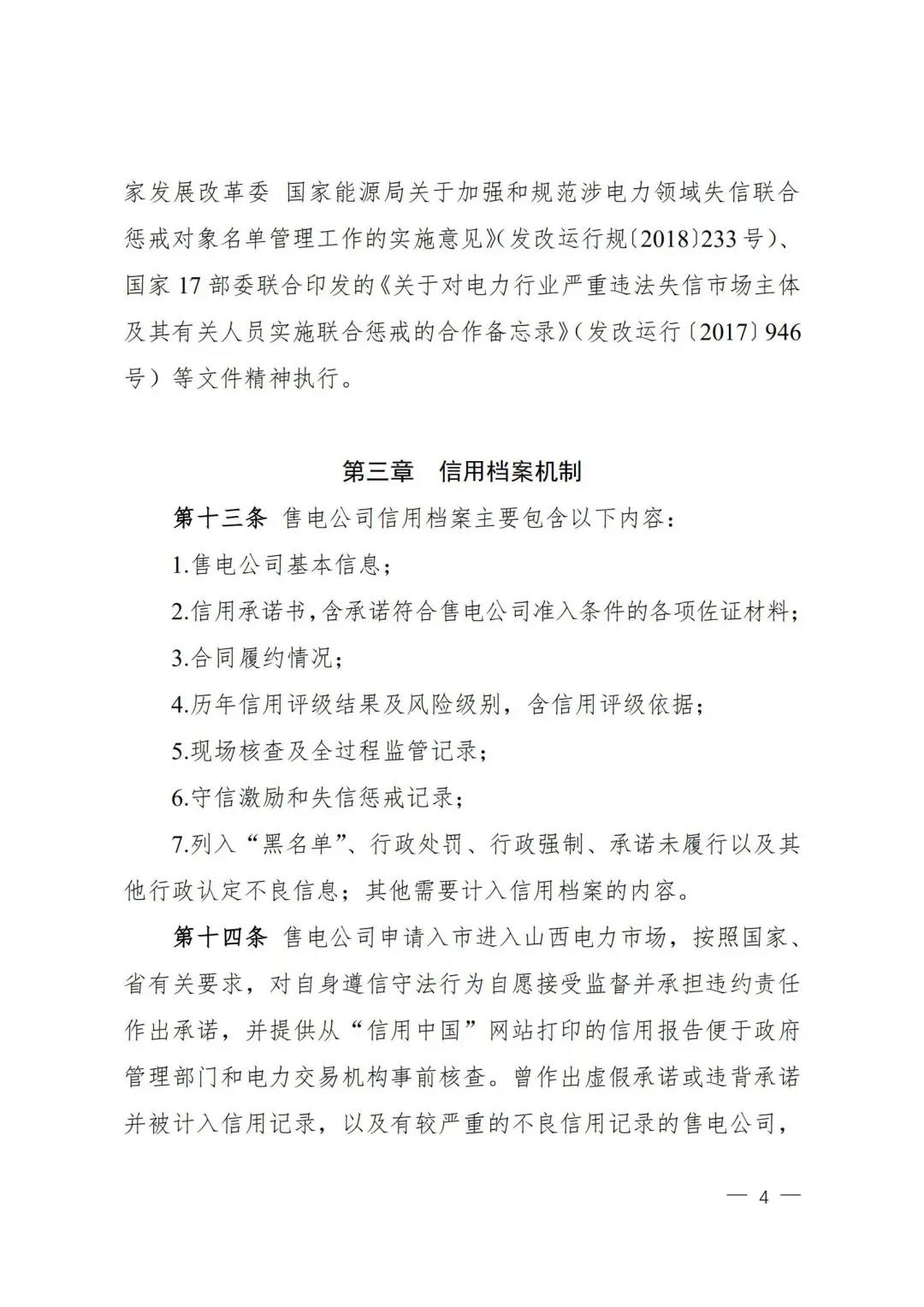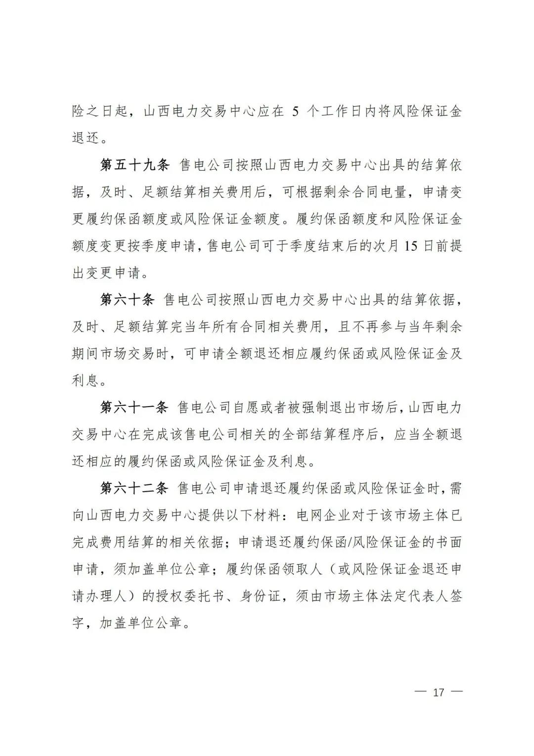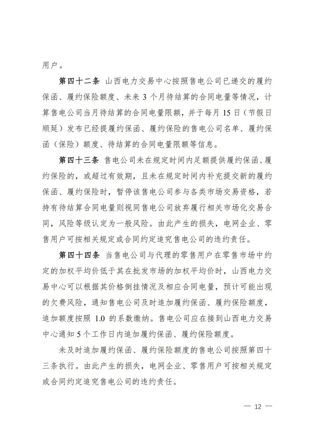 | 山西電力市場(chǎng)售電公司信用評(píng)價(jià)與風(fēng)險(xiǎn)防范管理辦法:依據(jù)風(fēng)險(xiǎn)級(jí)別執(zhí)行履約保函、保險(xiǎn)或風(fēng)險(xiǎn)保證金措施 |