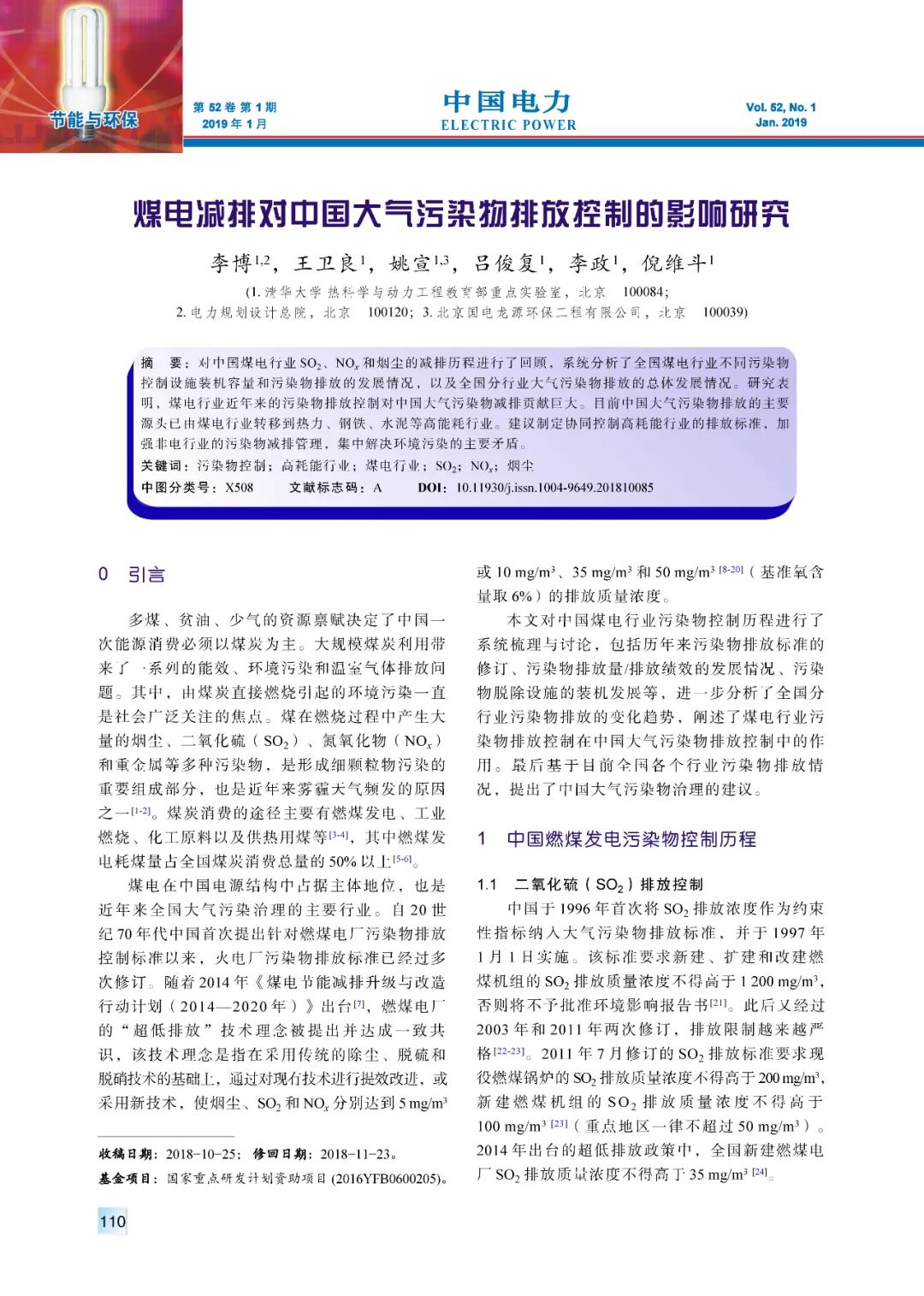 | 聚焦 | 煤電減排對中國大氣污染物排放控制的影響研究 |